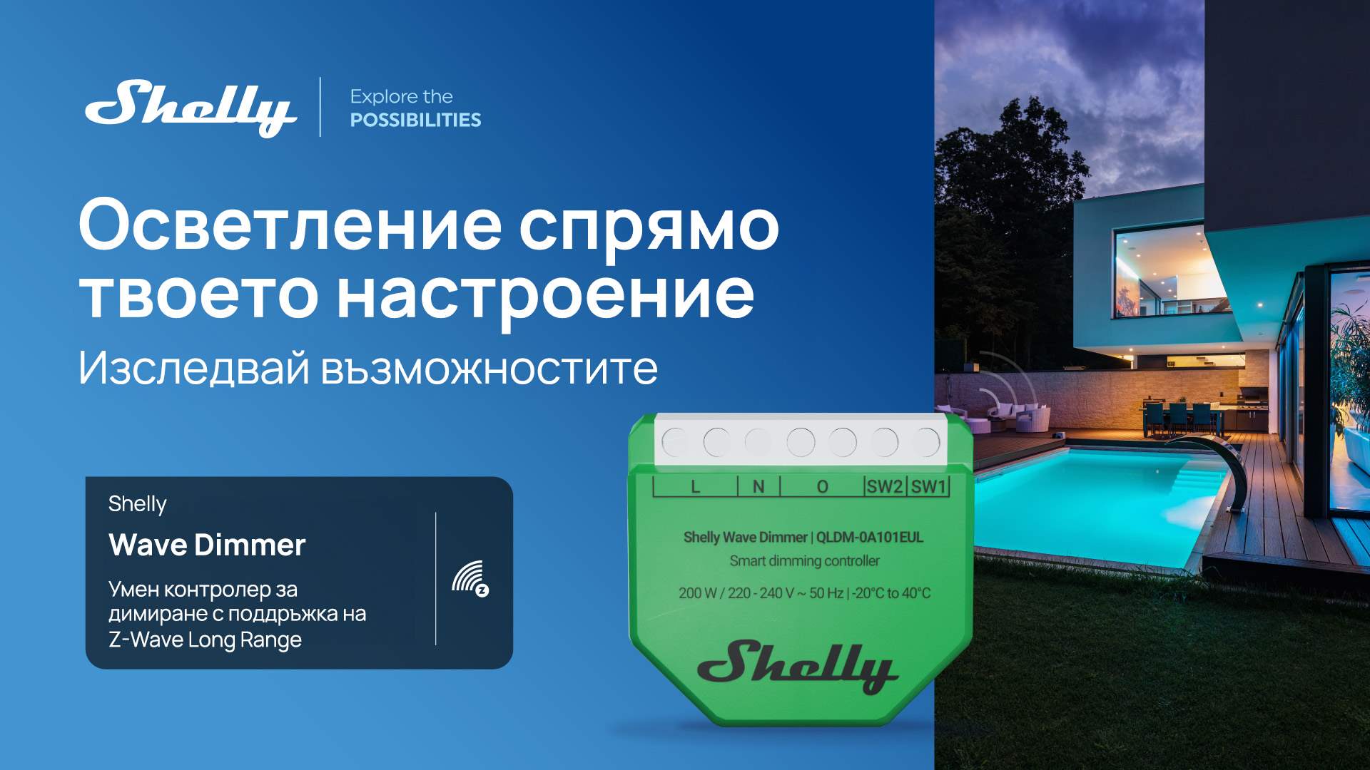 Shelly Group представя Shelly Wave Dimmer на европейския пазар. Това е първото устройство на компанията, което поддържа иновативната технология Z-Wave Long Range (ZWLR). С тази стъпка Shelly Group затвърждава позицията си на двигател на иновациите в сферата на смарт осветлението, като осигурява по-голям обхват, подобрена надеждност и усъвършенстван контрол за дома и бизнеса.